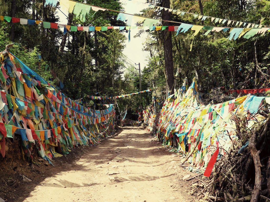 I walked around stupa and prayer flags on top of mountains in Shangri-La.